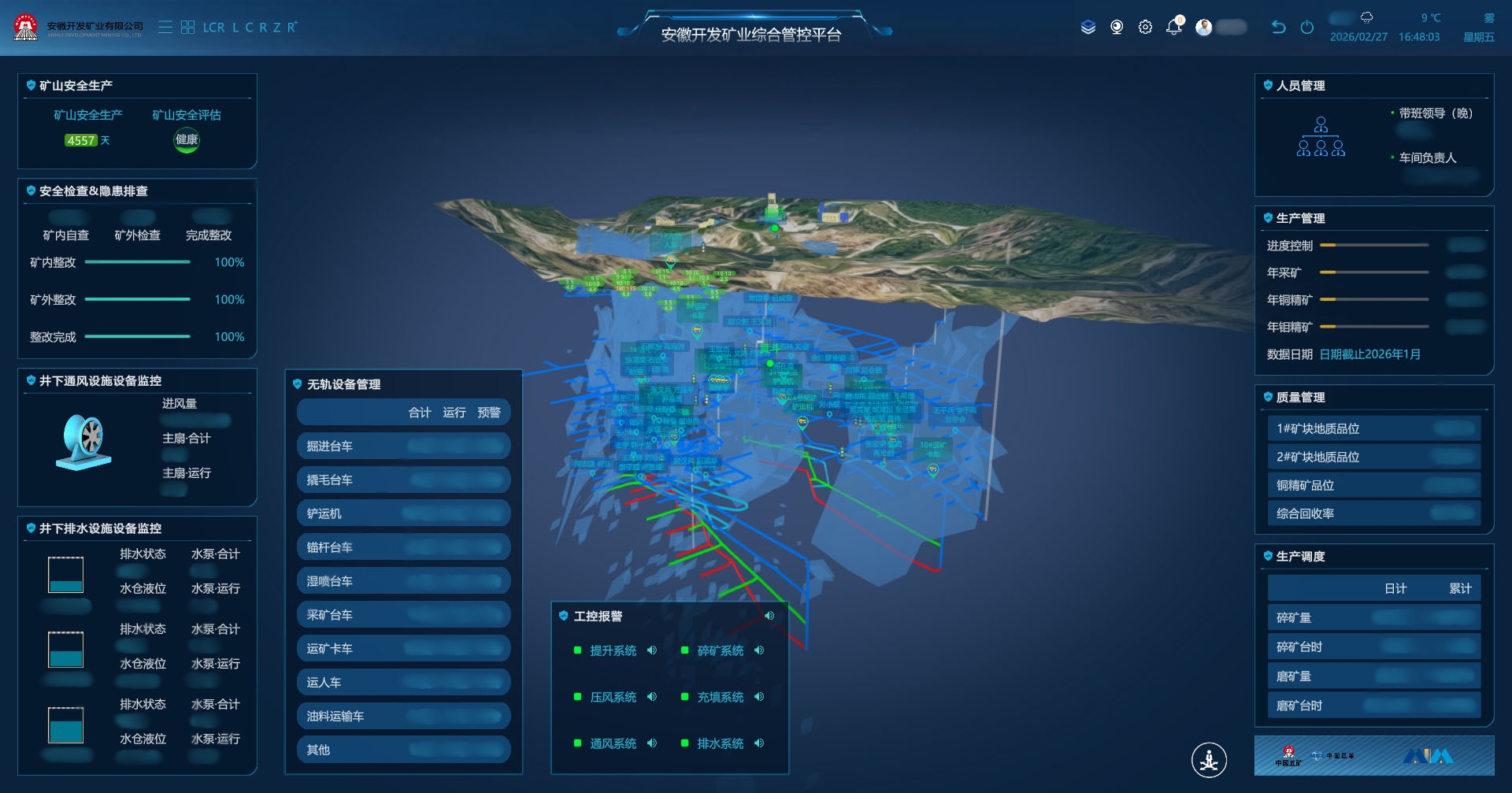 安徽開發礦業是五礦礦業旗下主要礦山,也是五礦礦業智慧礦山建設試點單位。項目旨在通過構建礦山數據中臺,將全礦海量的生產數據進行采掘和治理,轉化為可增值的數據資產,并在此基礎上搭建綜合集控系統與生產管控平臺,形成礦山生產調度的智能化“大腦”。項目建成后可實現礦山全流程集中管控與統一調度,顯著提升生產調度的科學性與預見性,推動礦山運營管理向集約化、智慧化升級。