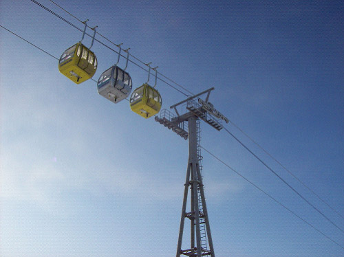 2004年11月8日一次試車成功, 2004年12月2日通過國家和地方有關(guān)部門的驗收,正式交付運(yùn)營。索道位于內(nèi)蒙牙克石市東南約16公里處,型式為單線循環(huán)固定抱索器吊廂組式,線路水平距離2818米,高差287.7米,單向小時運(yùn)量300人。